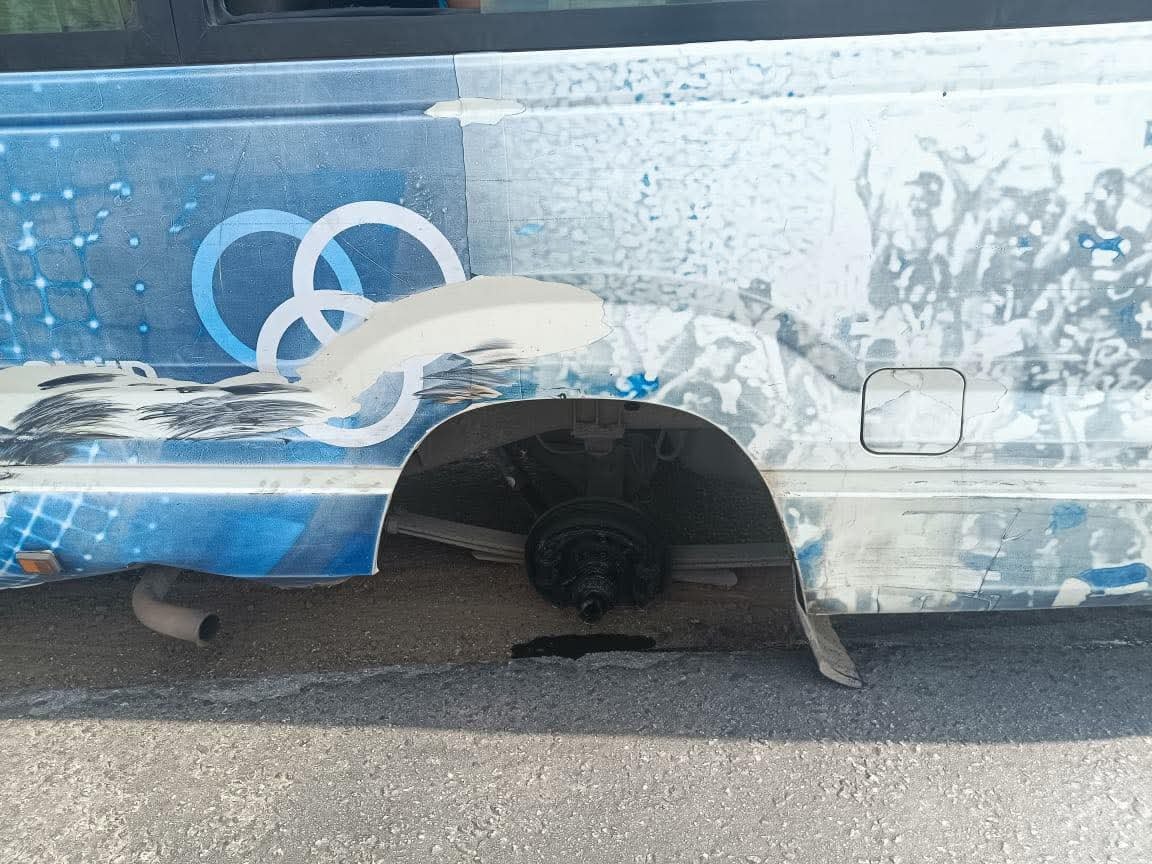 Players and officials on board reportedly had a moment of terror when one of the tires came off while the car was moving.