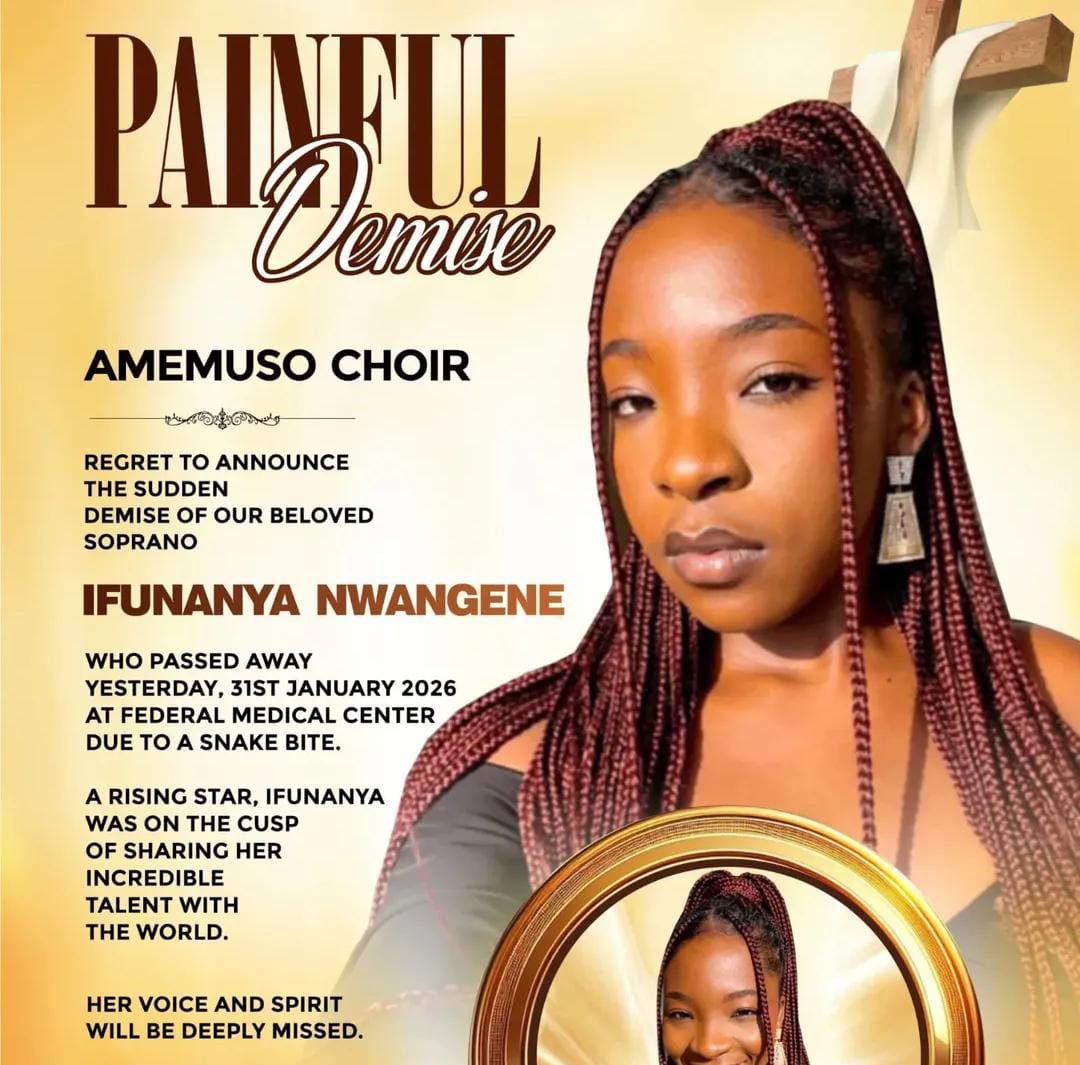 Sam Ezugwu, the music director of Amemuso Choir, recalled the closing hours to TheCable. He revealed that medical personnel informed him that while two doses of anti-venom were required, only one was immediately available at the hospital and had been administered.