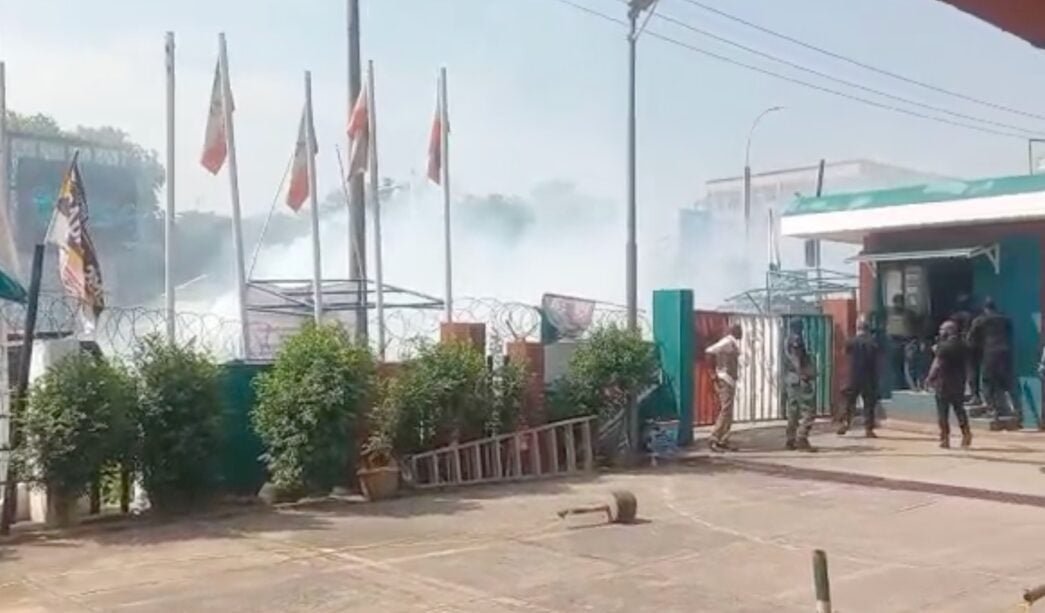 Teargas canisters were thereafter deployed to disperse politicians and journalists alike as supporters of both factions clashed and brawled.