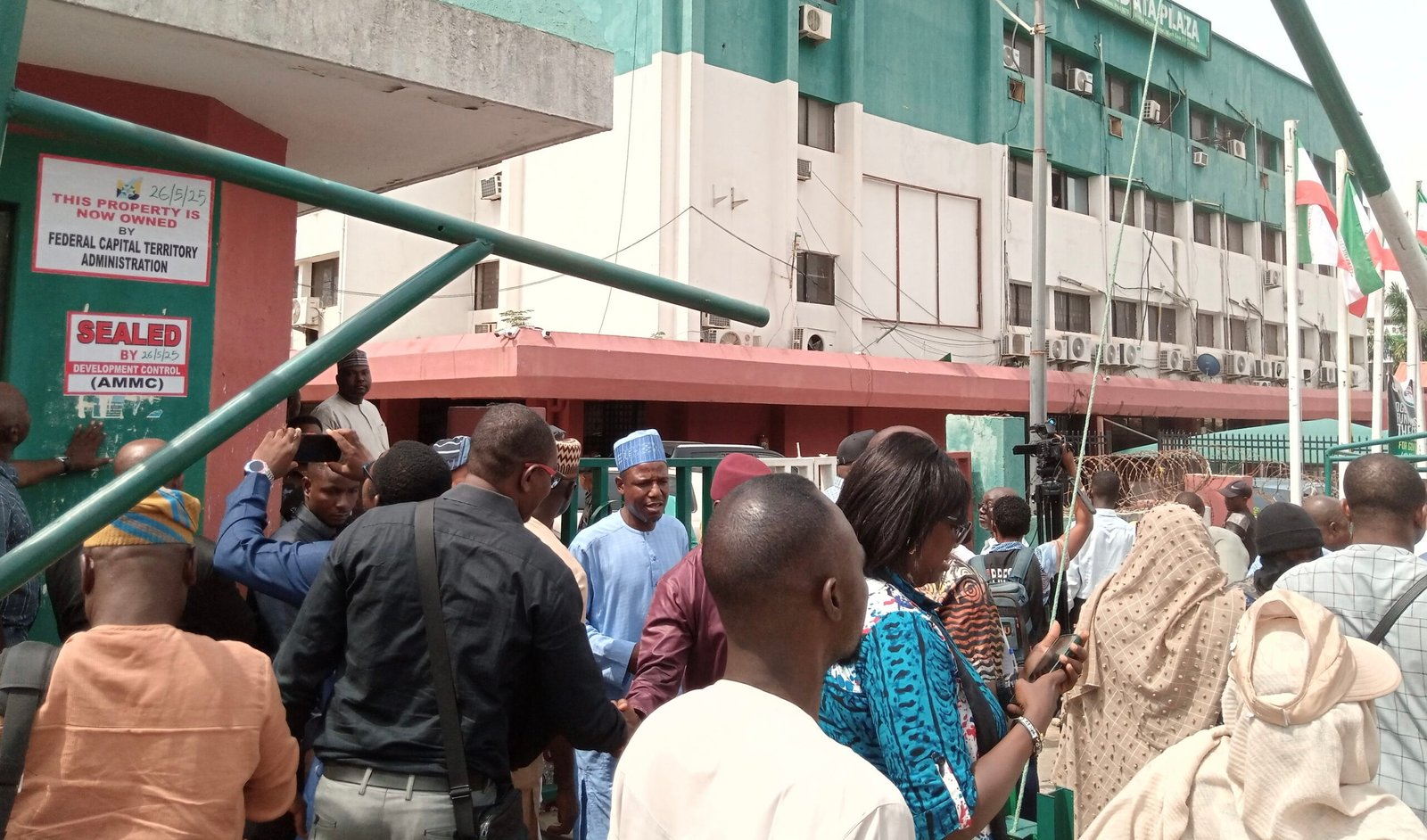 Before their scheduled board of trustees (BoT) and national executive committee (NEC) meetings, Samuel Anyanwu, the national secretary of the Wike bloc, and other pdp leaders in his faction arrived at the Wadata Plaza premises.
