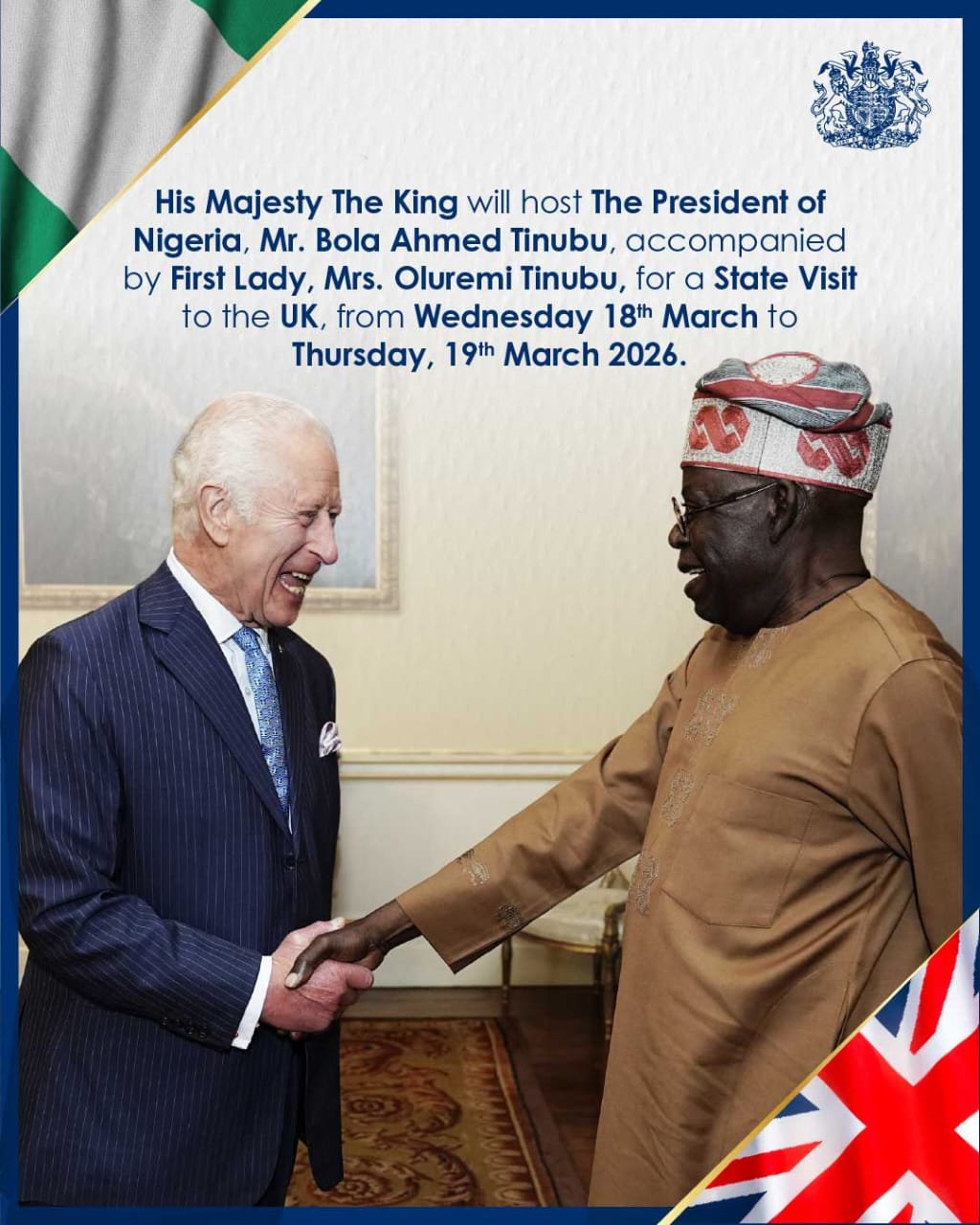Buckingham Palace has announced that President Tinubu would travel to the United Kingdom (UK) for a two-day state visit on March 18.