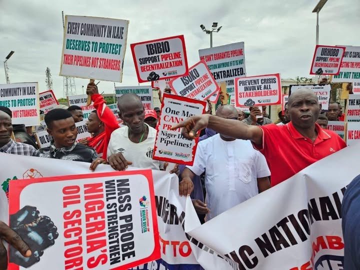 Tesleem Kolawole, the group’s organiser, encouraged lawmakers and members of the National Assembly not to compromise on pipeline security and the Niger Delta’s future while speaking to reporters during the demonstration.