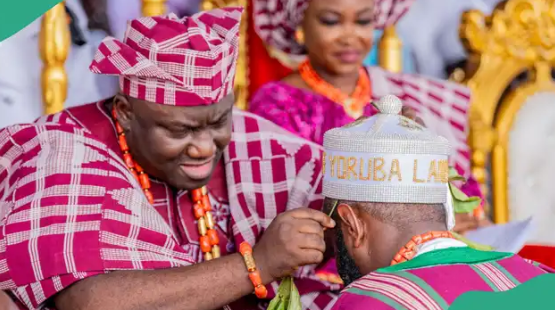 President Bola Ahmed Tinubu’s son Seyi Tinubu has received a new title as he has been installed as the “Okanlomo of Yorubaland” by His Imperial Majesty, Oba Abimbola Owoade, the Alaafin of Oyo.