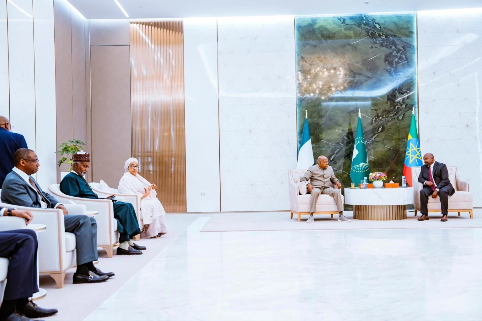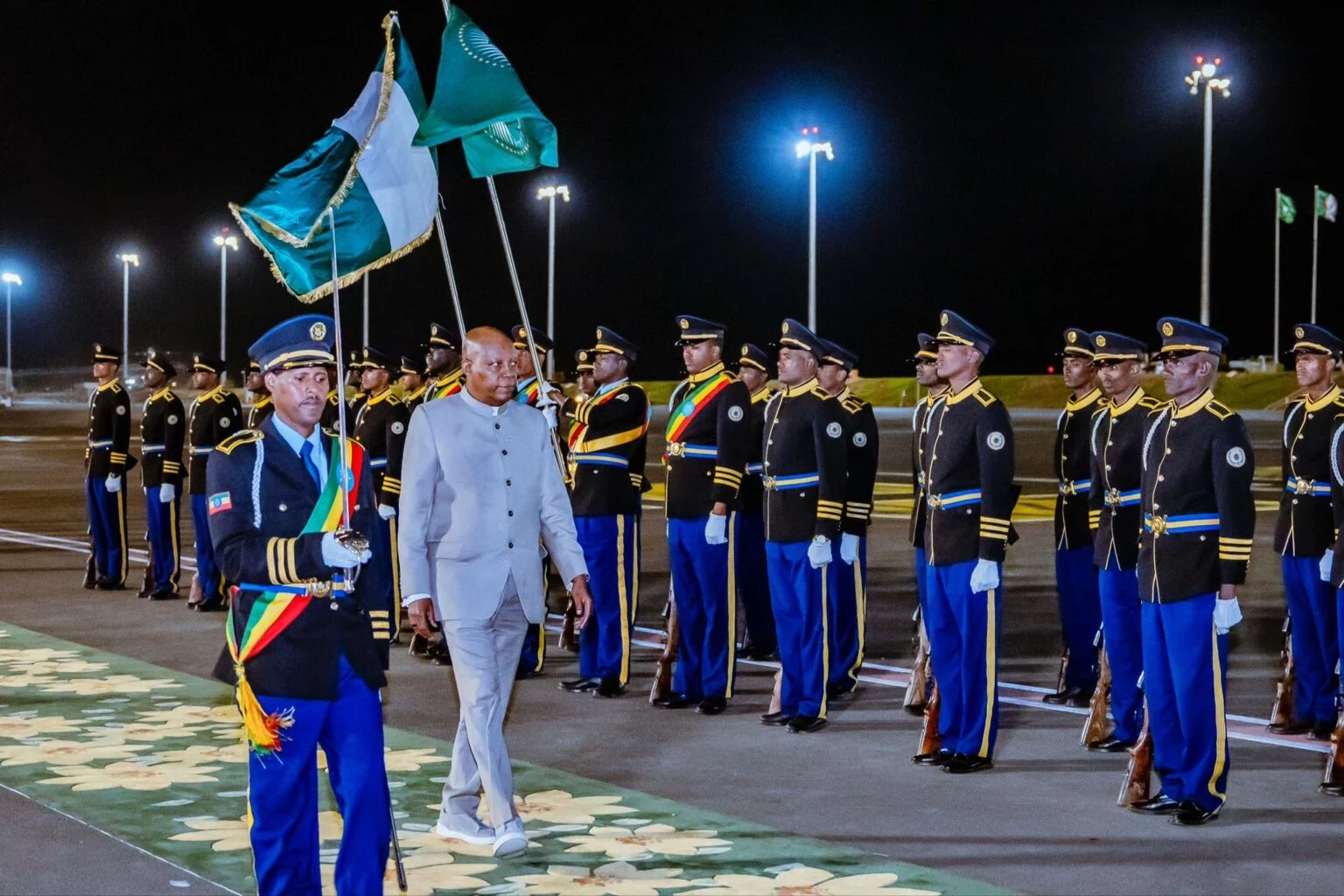 Senior officials from the Nigerian Embassy in Addis Ababa, Nigeria’s Minister of Foreign Affairs, Amb. Yusuf Tuggar, and other government officials were also in attendance to greet him. The Vice-President was then briefed by Tuggar on his schedule and scheduled summit engagements.