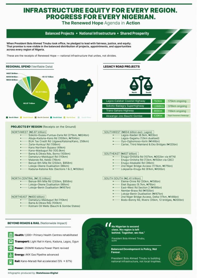 This is the equity of Renewed Hope. No Nigerian is second class, no region is left behind. Together we will rise as one nation, one people, and one destiny.