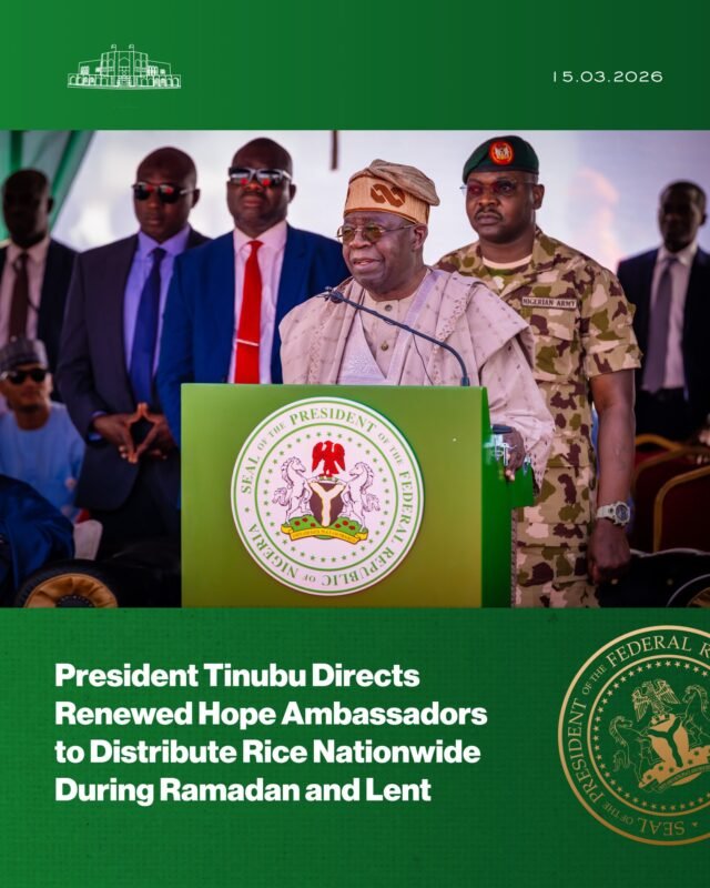 “Under the directive, the Renewed Hope Ambassadors will coordinate the distribution through their nationwide grassroots network to ensure that families across Nigeria benefit from the intervention during this holy season when both Muslims and Christians are fasting,” the statement said.