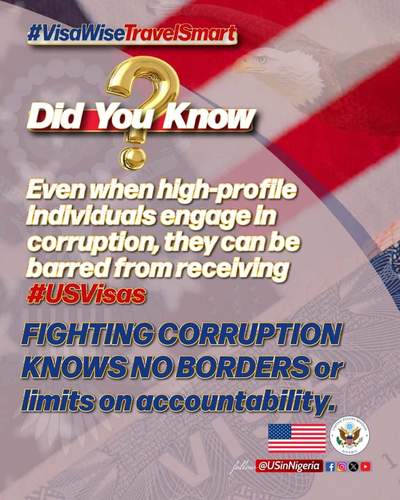 As Washington continues to broaden its international battle against bribery and abuse of power, the United States has warned that corrupt Nigerian government officials face the possibility of being denied entry.